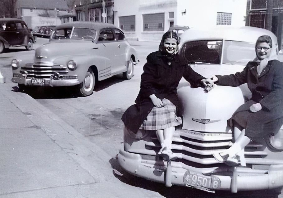 Many years later my grand parents stand once again beside the same car — older wiser and richer with memories. Time has changed their faces but not