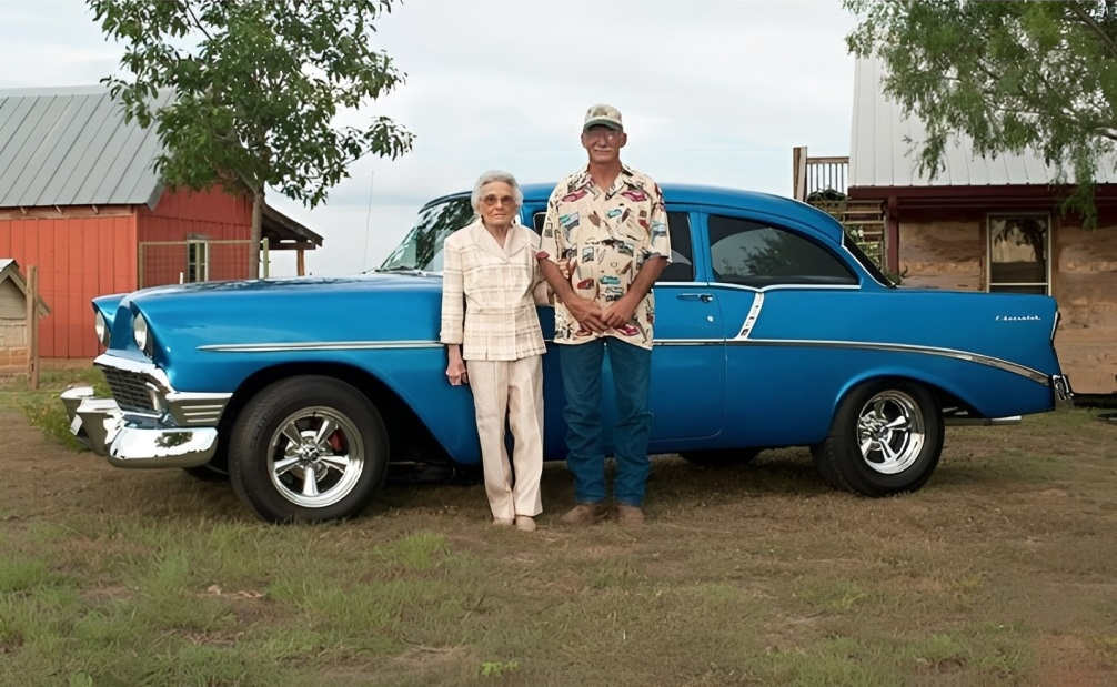 Many years later my grand parents stand once again beside the same car — older wiser and richer with memories. Time has changed their faces but not
