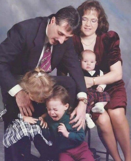 Our family took what was already a fantastic awkward family photo and brought it full circle. The chaos the crying and the general mayhem captured by