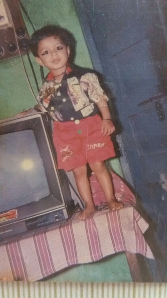 My childhood photo with small rotating cycle and current photo with another Bicycle.